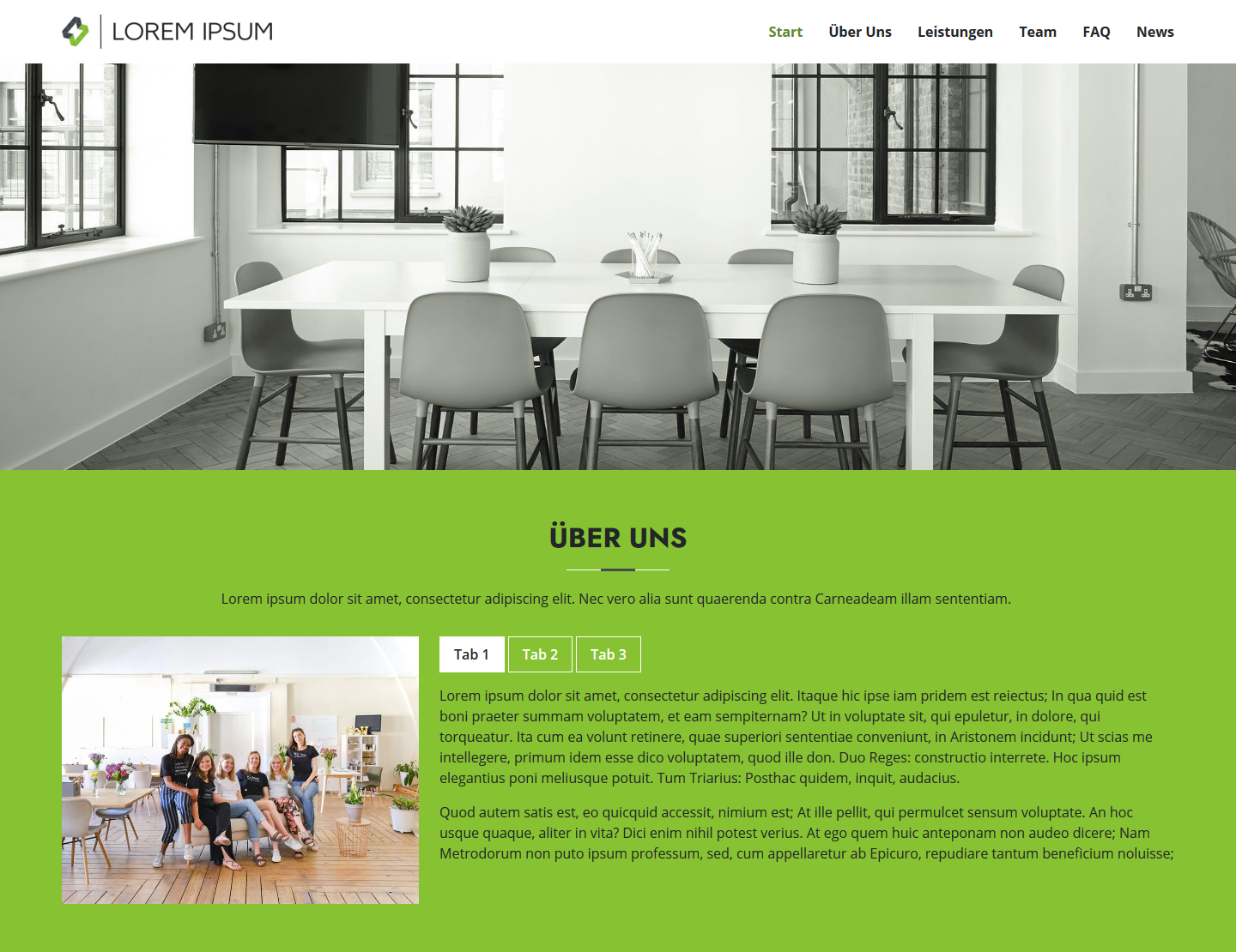 Onepager mit Bootstrap-Elementen (Card, Button, Akkordeon, Tabs)